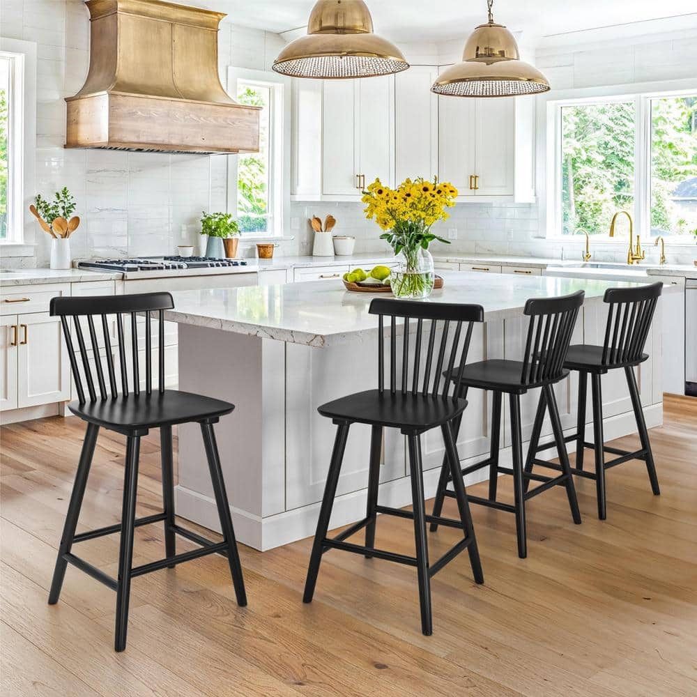 Black Solid Wood Barstool Set Of 4