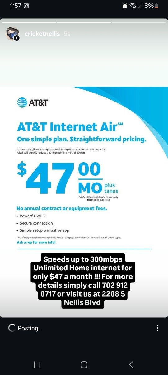 For anymore information visit Cricket at 2208 S Nellis Blvd Suite 6 Nellis & Sahara