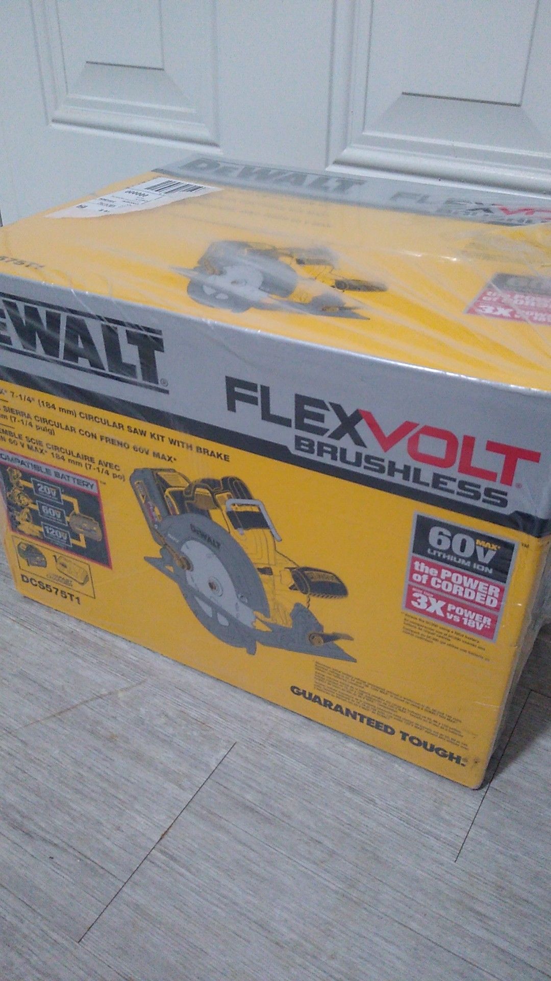 New Never used in box DeWalt 60v flex skill saw. With combo charger and flex battery