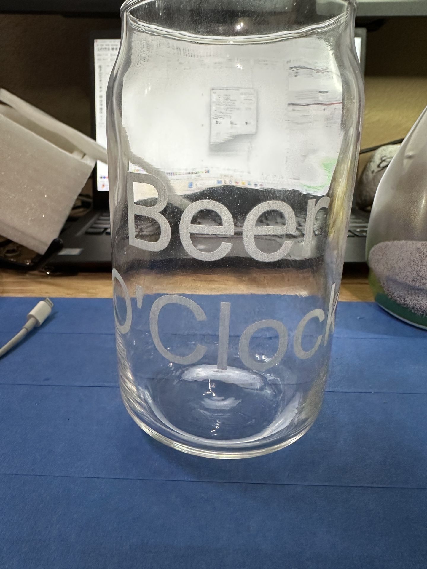 Selling Engraved Beer O’Clock glasses. $15for 1 $40 for 4