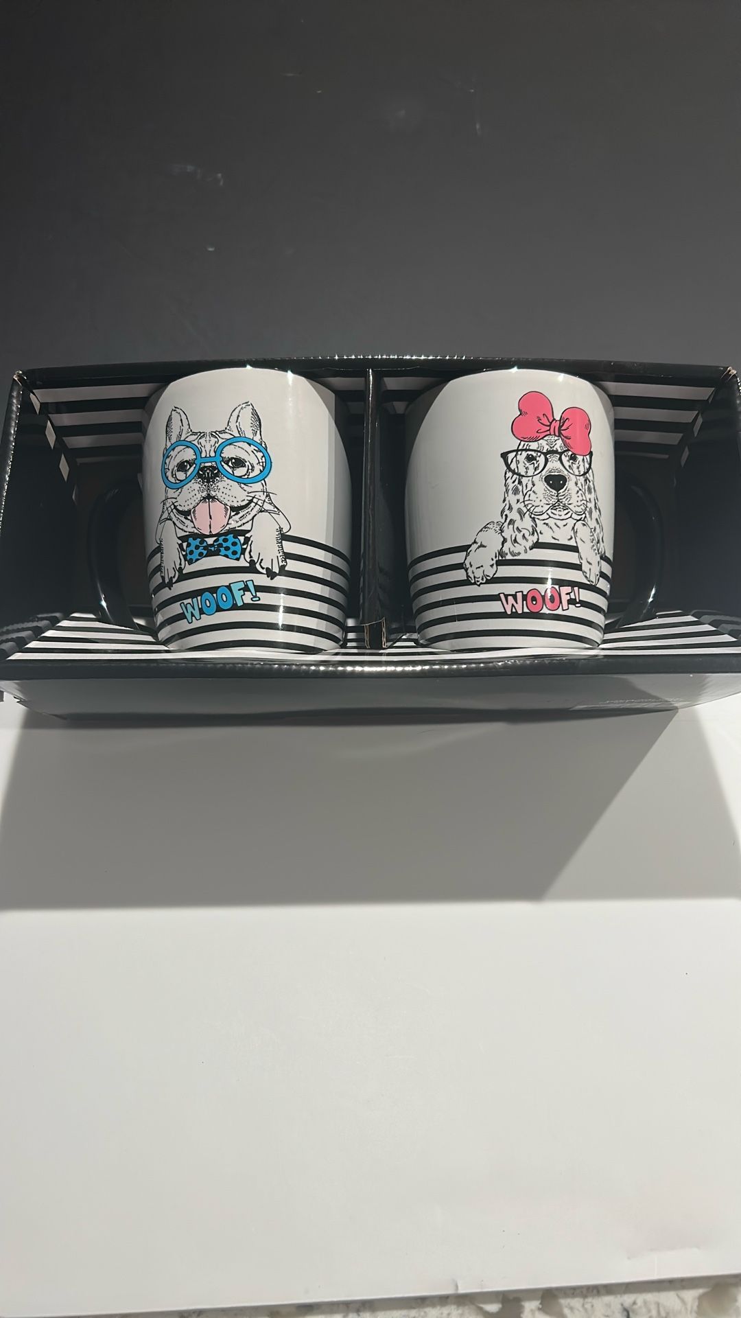 Ceramic coffee/ tea mugs, 15 oz in a box NEW Box has small tear. Mug is about 5” tall.