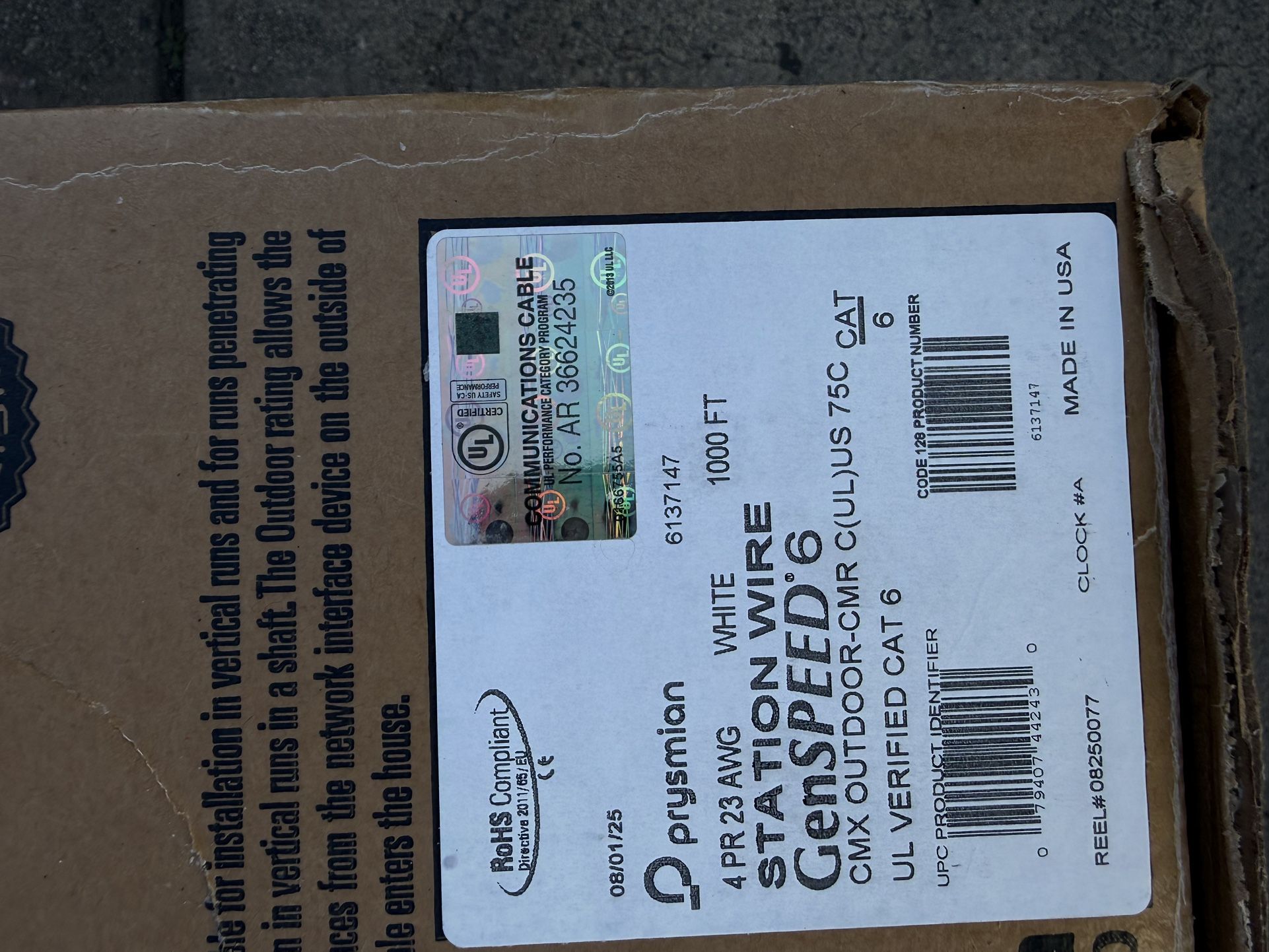 Brand new ..1000ft per box..Cat6 cable..solid copper wire..retails for over 240$ per box.. used for cameras and communication pick up preferred 110$ obo