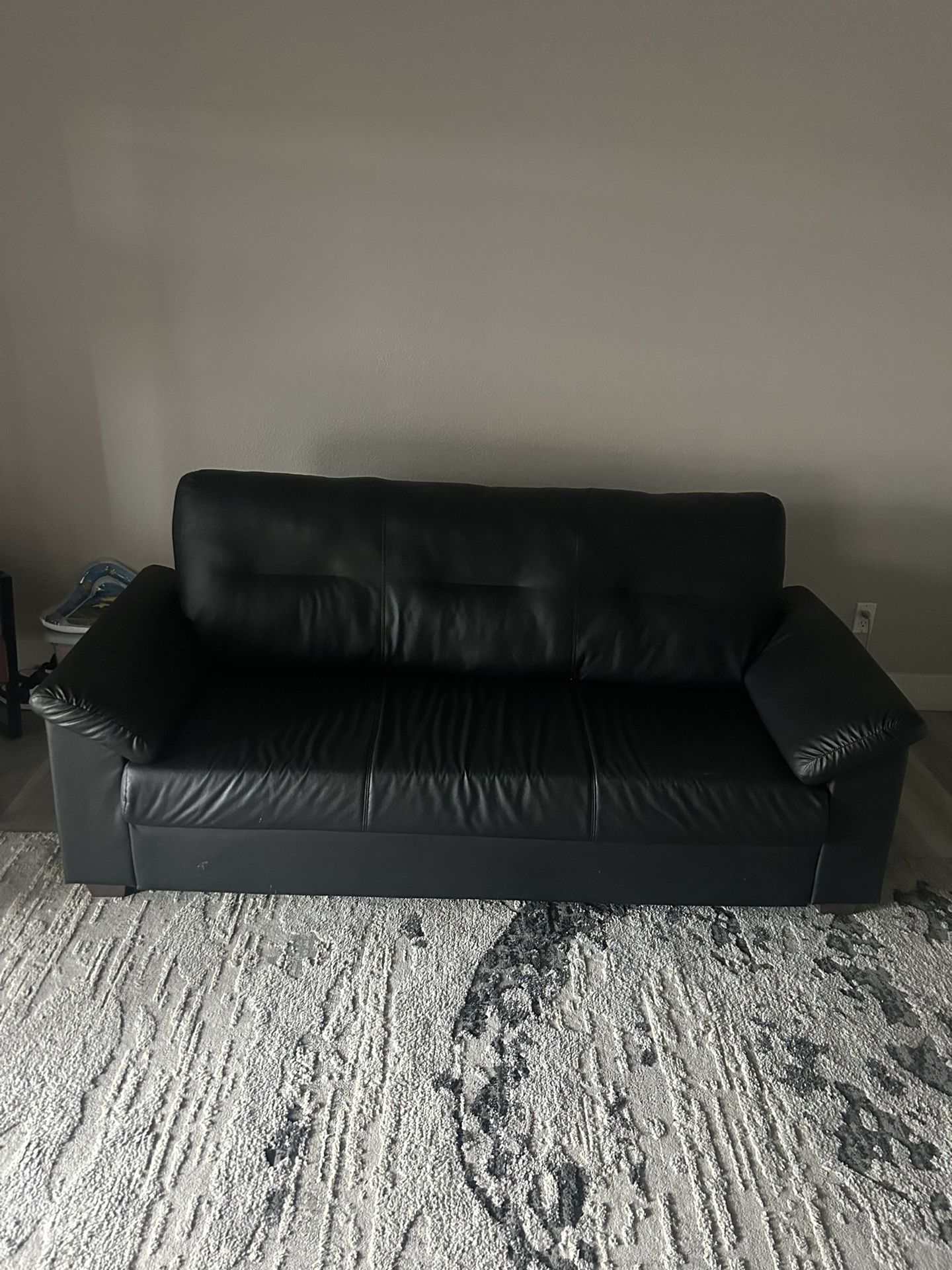 Firm, leather couch. No damage, just bought a bigger one & need gone asap. Pick up only.