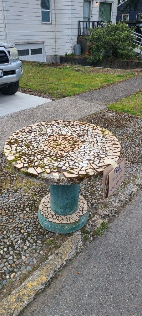 Started to do a mosiac but didnt finish. You can clean it up a bit and finish it yourself. Comes in 2 pieces. You will need 2 people to pick it up Free