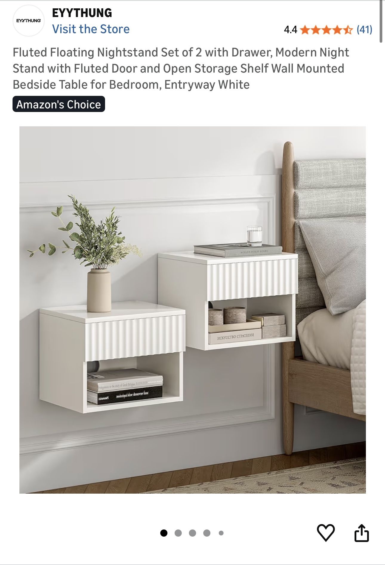 NEED IT GONE ASAP Fluted Floating Nightstand Set of 2 with Drawer, Modern Night Stand with Fluted Door and Open Storage Shelf Wall Mounted Bedside Table for Bedroom, Entryway White Purchased in Feb 2025. Good condition. Selling for $65 OBO