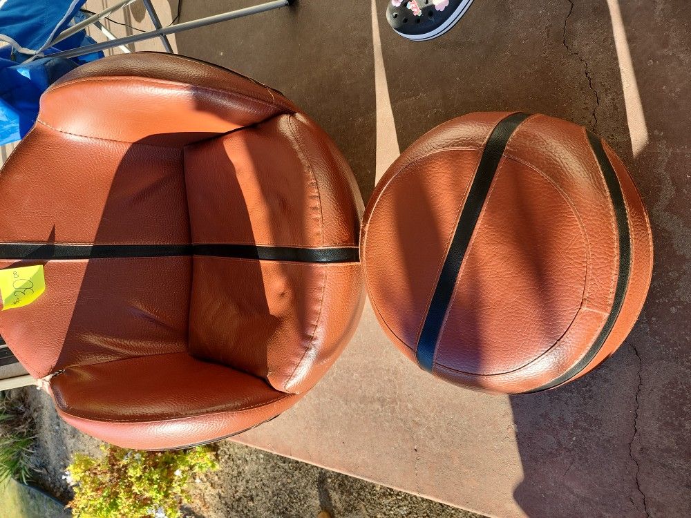 Kids Leather basketball seat w/ottoman. ****Rips on 2 creases of seat but the rest of seat in good condition***