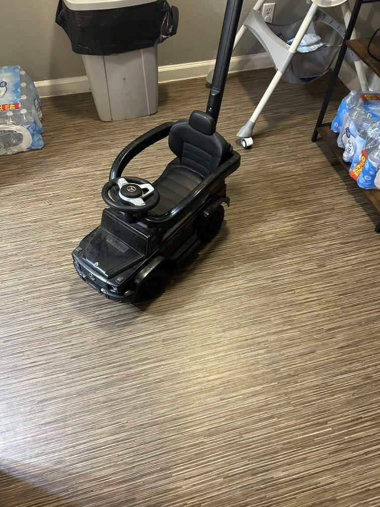 Cute little push car . Does not need a battery. Used a few times . Guard rail . Horn honks . Great condition