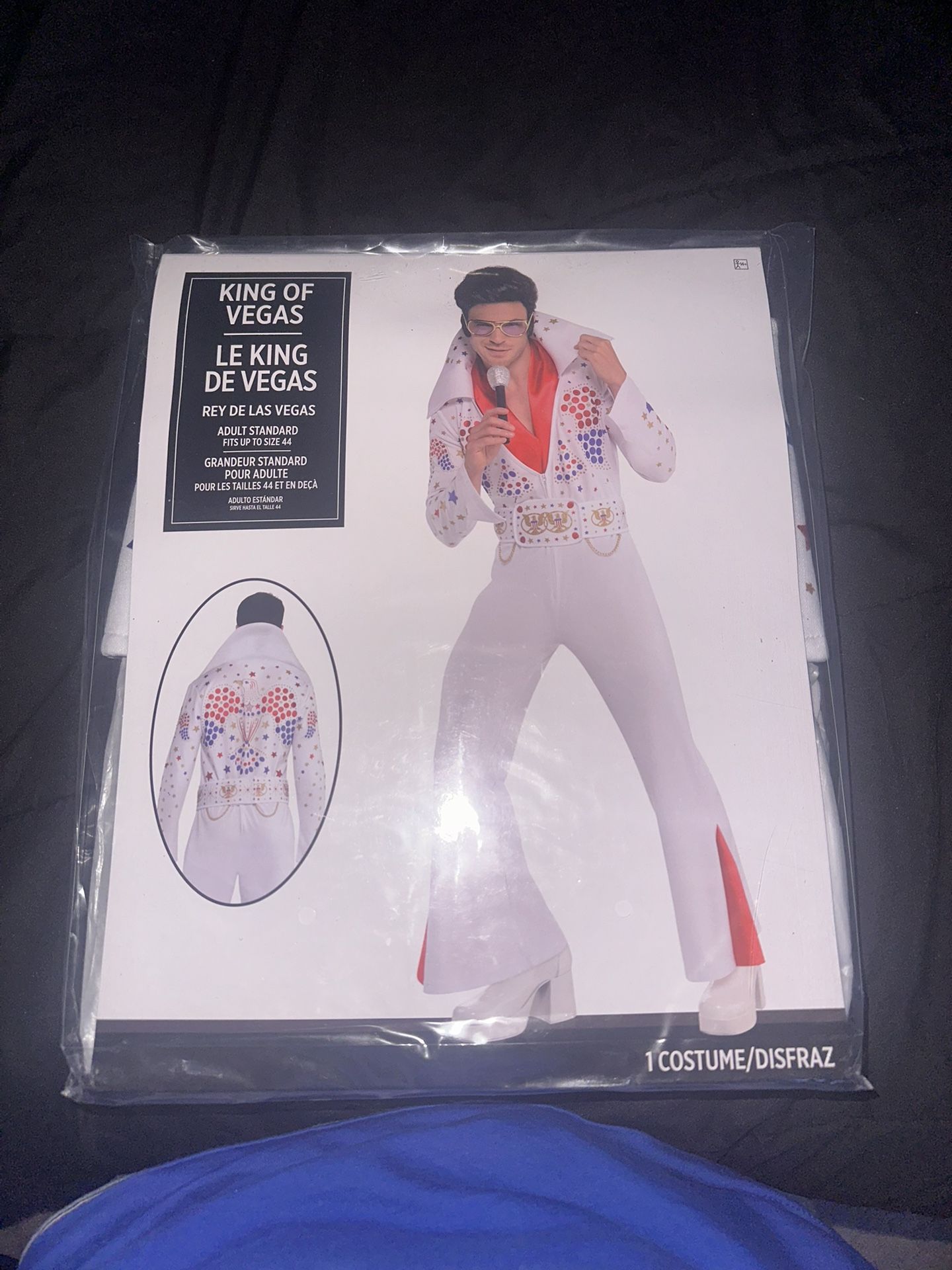 King Of Vegas-Elvis Presley size:Adult Standard fits up to size 44 Brand new Pick-Up Only I have a lot more costumes on my page