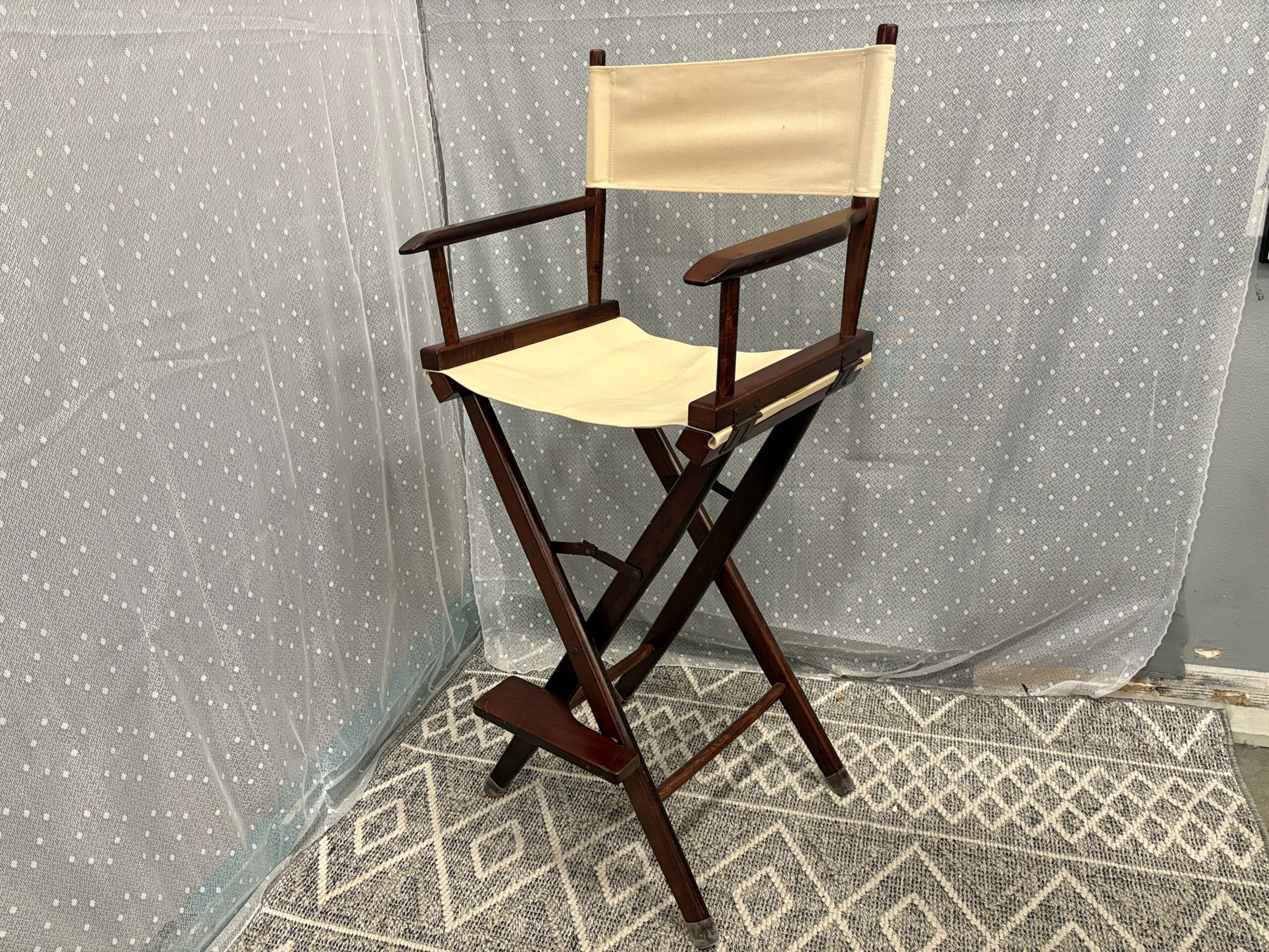 PIER 1 Walnut Finish Wooden Directors Chair with Thick Ivory Canvas Seat