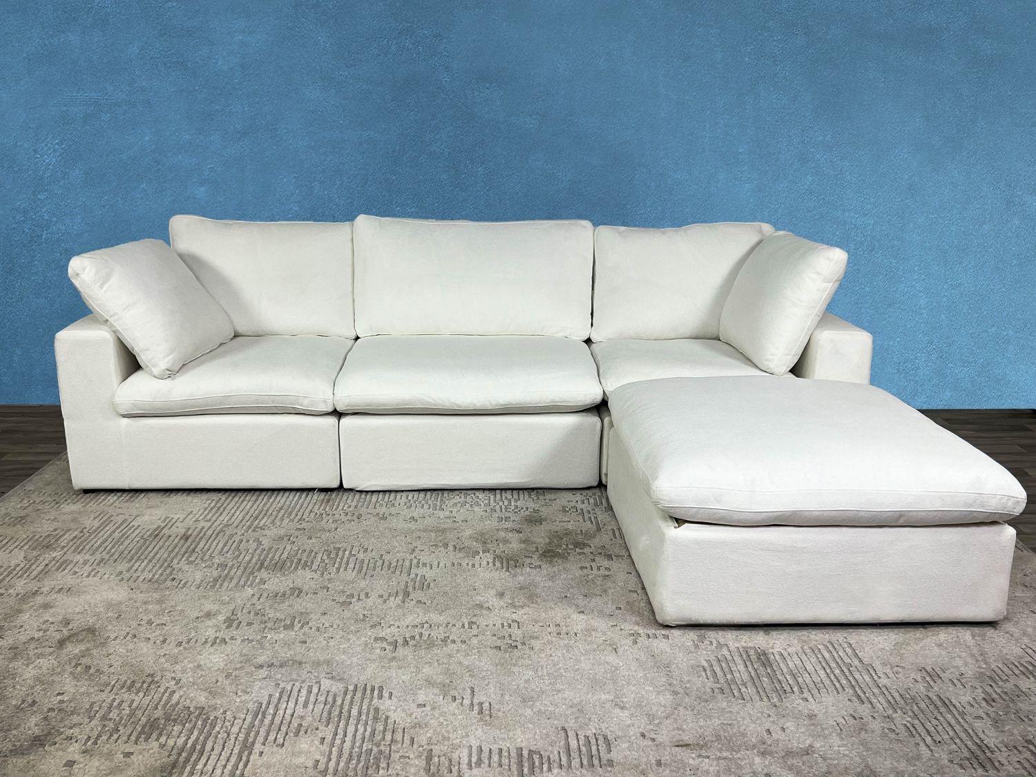 Curb-side Local Delivery SAME DAY. π This Cream White Cloud Modular Sofa and Ottoman is the perfect centrepiece for any apartment or family living room. It comes in 4 easy to move pieces! Includes ottoman with storage.