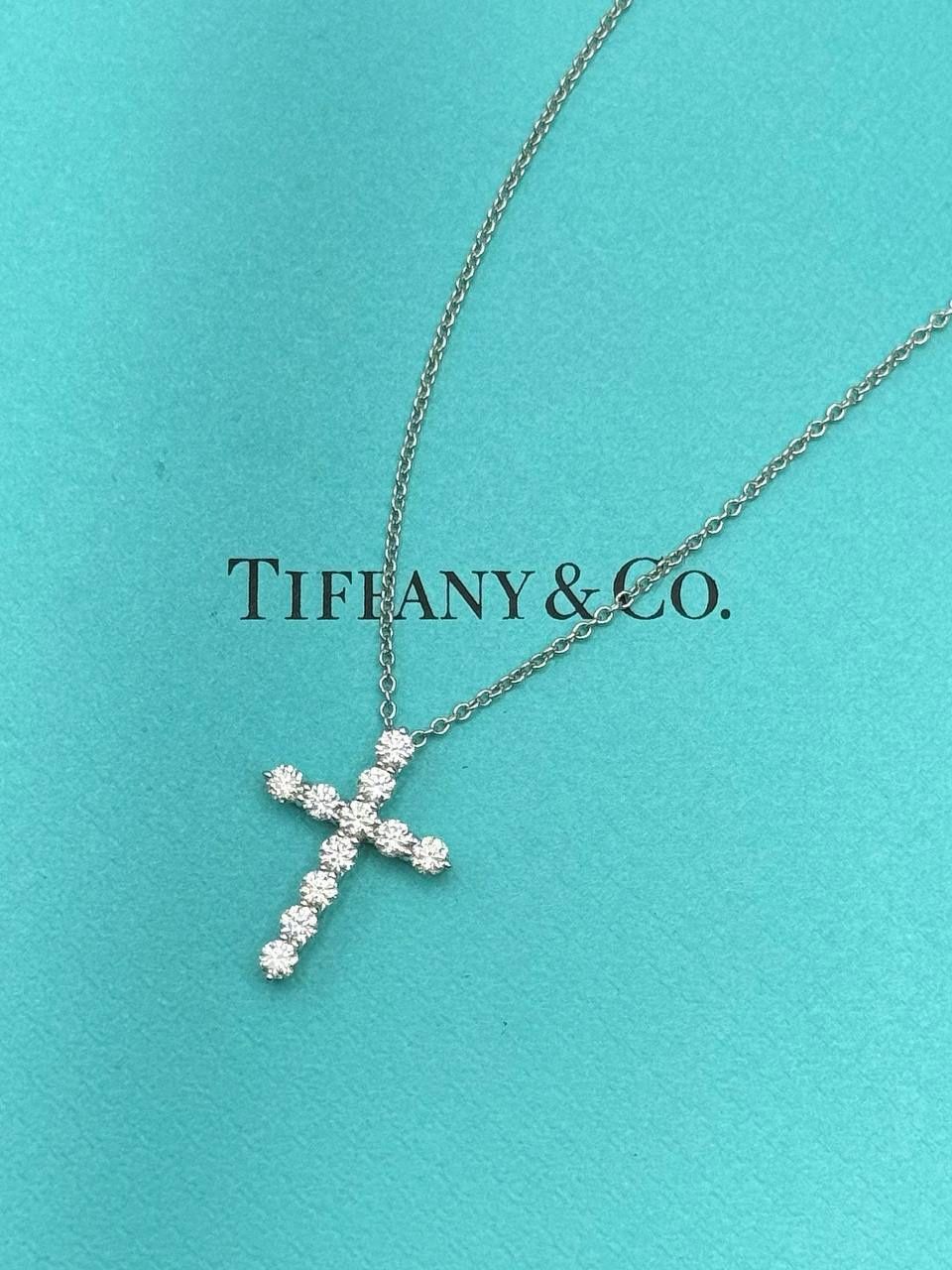 TIFFANY & Co. Platinum PT950 0.44CTW Diamond Cross Pendant Necklace w/ Boxes $3,100