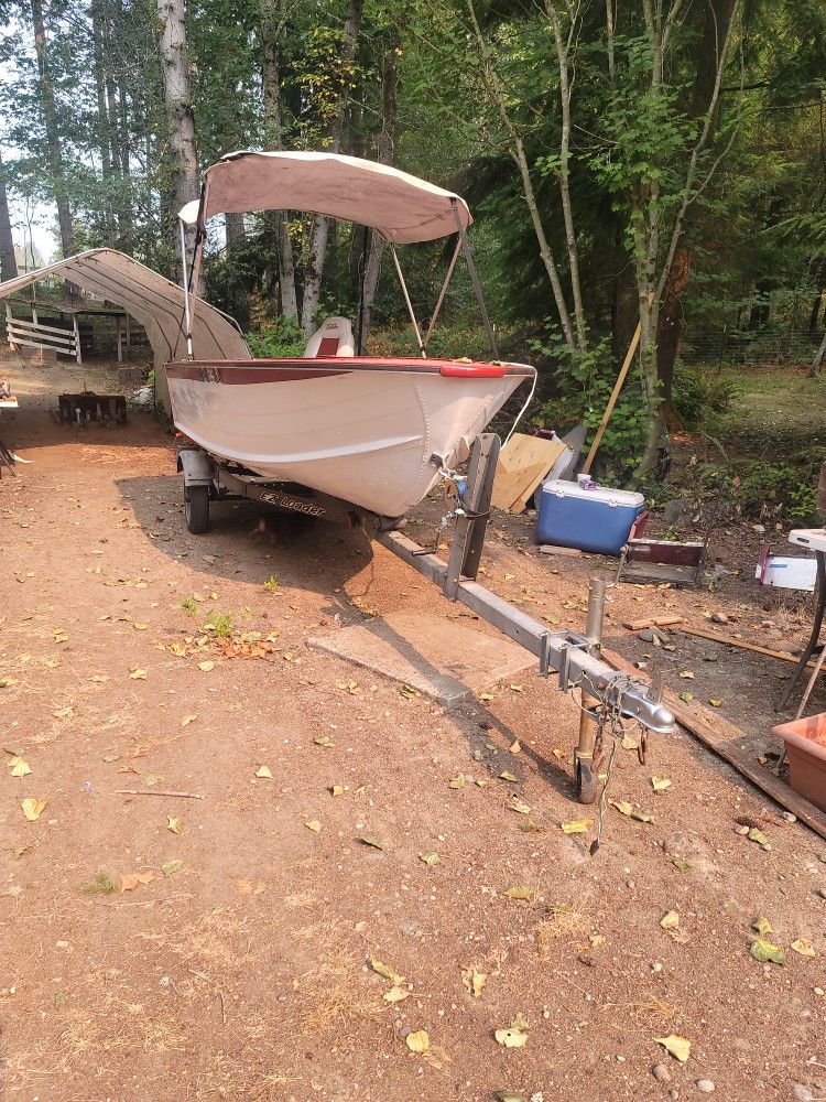 Have title for boat but not trailer I got a few months ago as a project I put new floor and carpet and paint still needs windshield wich I have no leak at all I took out fishing a few times nice and roomy just needs a little tlc π
