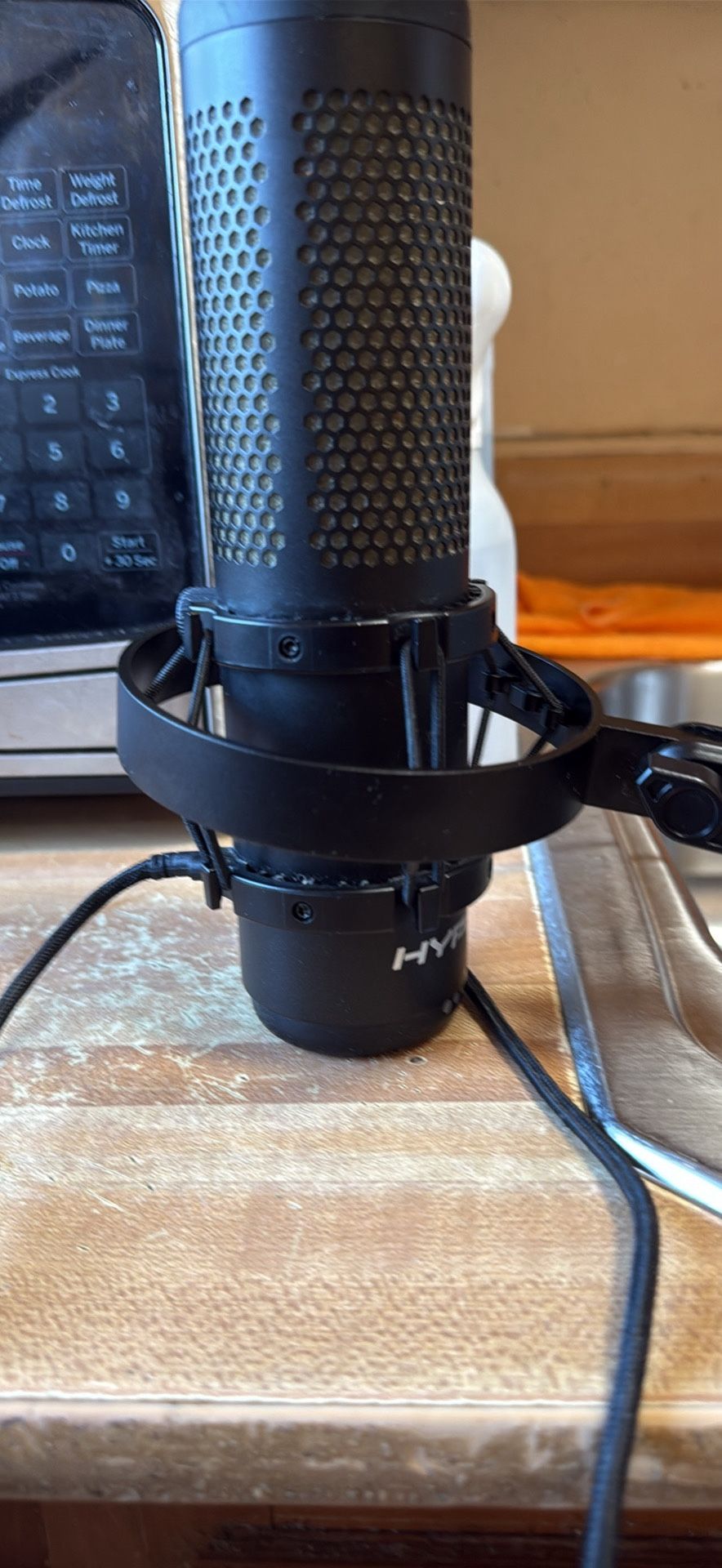 Awesome HyperX microphone. Black condenser mic has shock mount. Comes with braided cable. MISSING THE MICROPHONE STAND