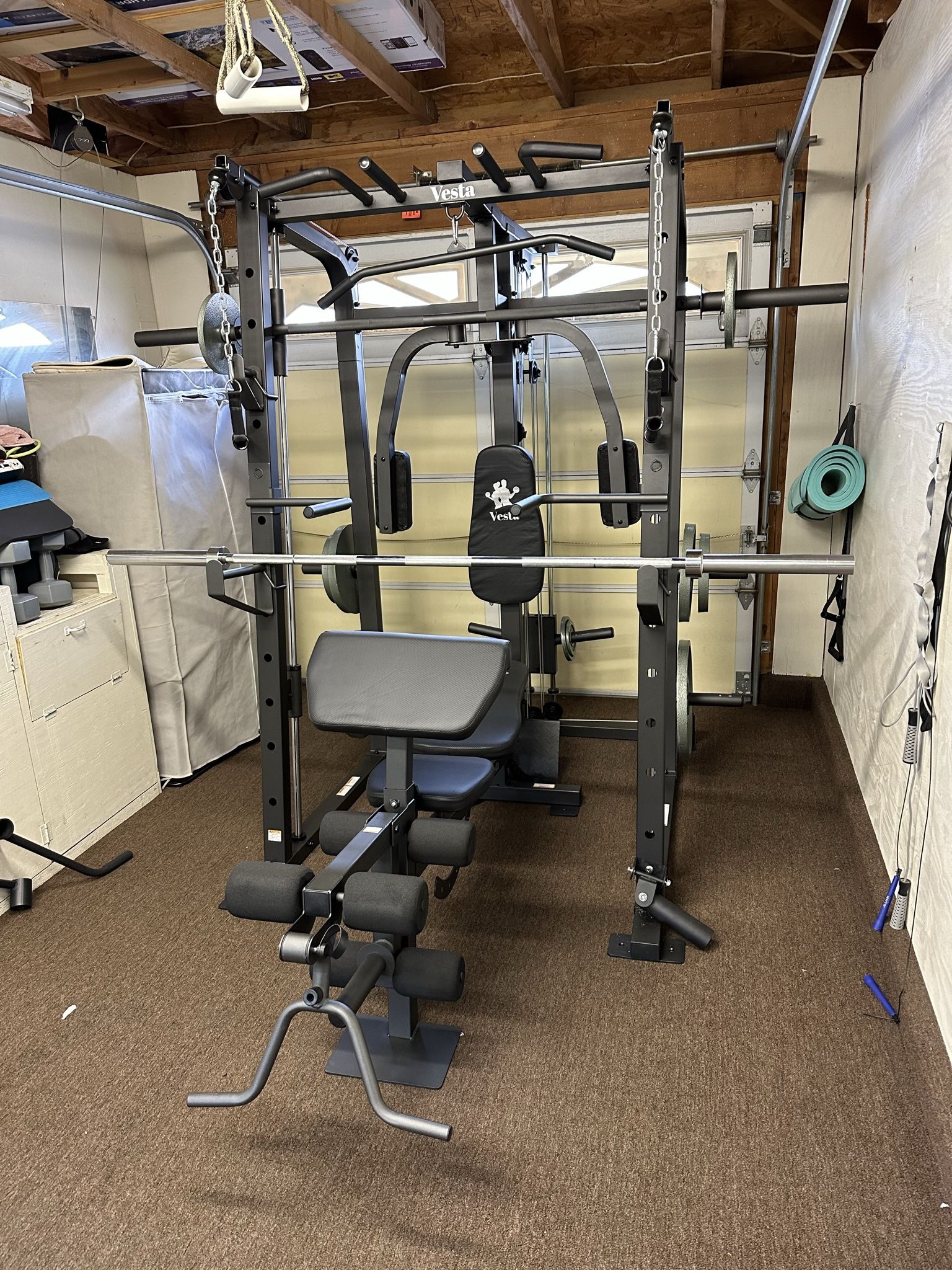 Vesta Fitness Smith Machine 1001 w/Bench Attachment | 245lb Cast Iron Olympic Weights | 7ft Olympic Bar | Fitness | Gym Equipment | FREE DELIVERY 🚚