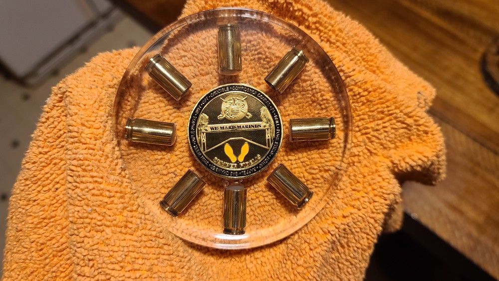 Handmade coasters. Set of 5 Bullet coasters $40...Set of 5 Challenge Coin coasters $40