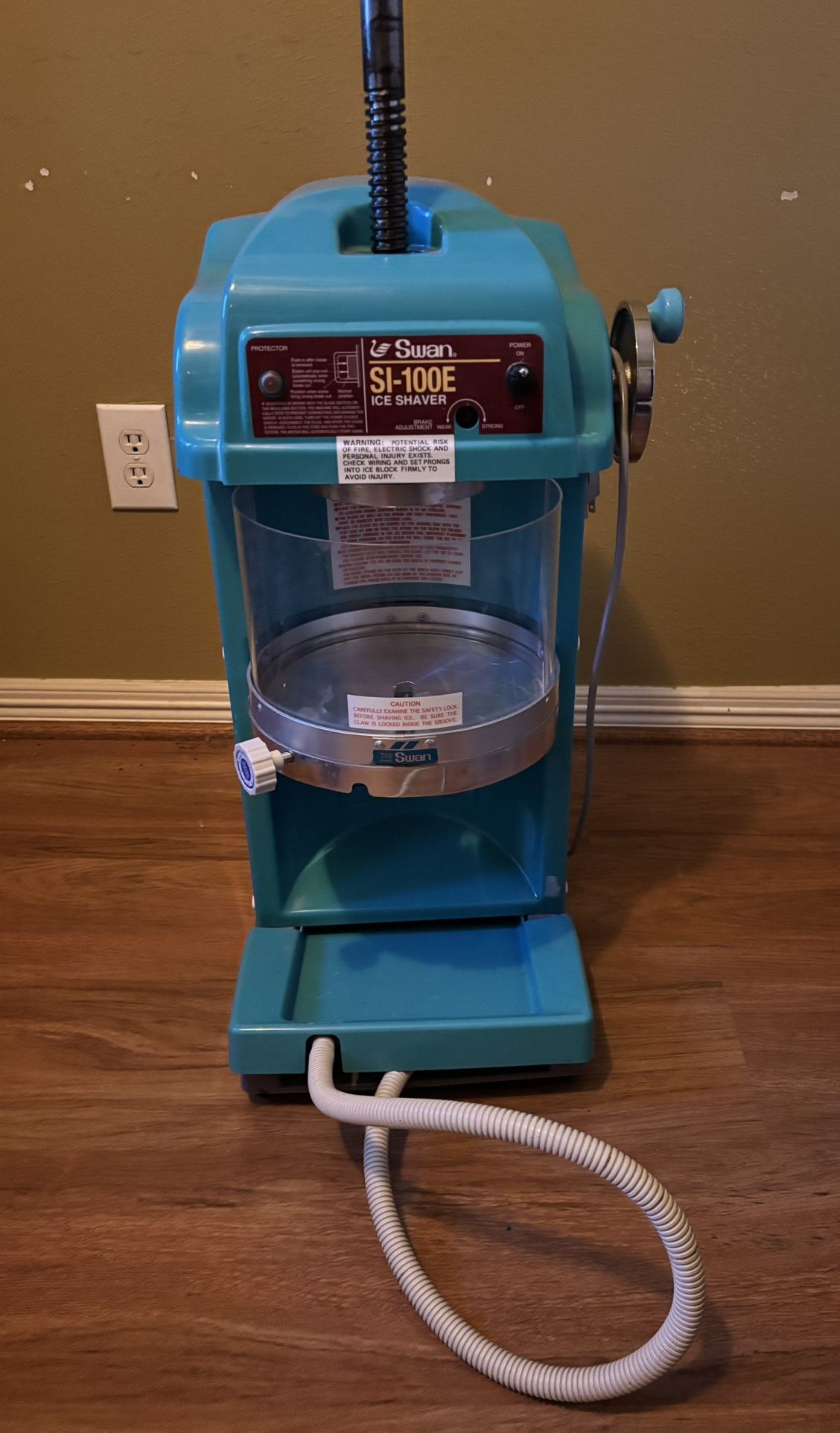 The Swan Ice Slicer SI-100E Electric Block Ice Shaver Machine is a high-quality product that is designed to efficiently shave blocks of ice . With its reliable brand name, SWAN, and model number SI-100E this electric ice shaver machine is reliable and durable for use in various settings such as households, restaurants, or bars. Its sleek design and simple operation make it a convenient tool for producing perfectly shaved ice. Barely used will need new blades. Top of line for Shaved Ice/Snow Cones.