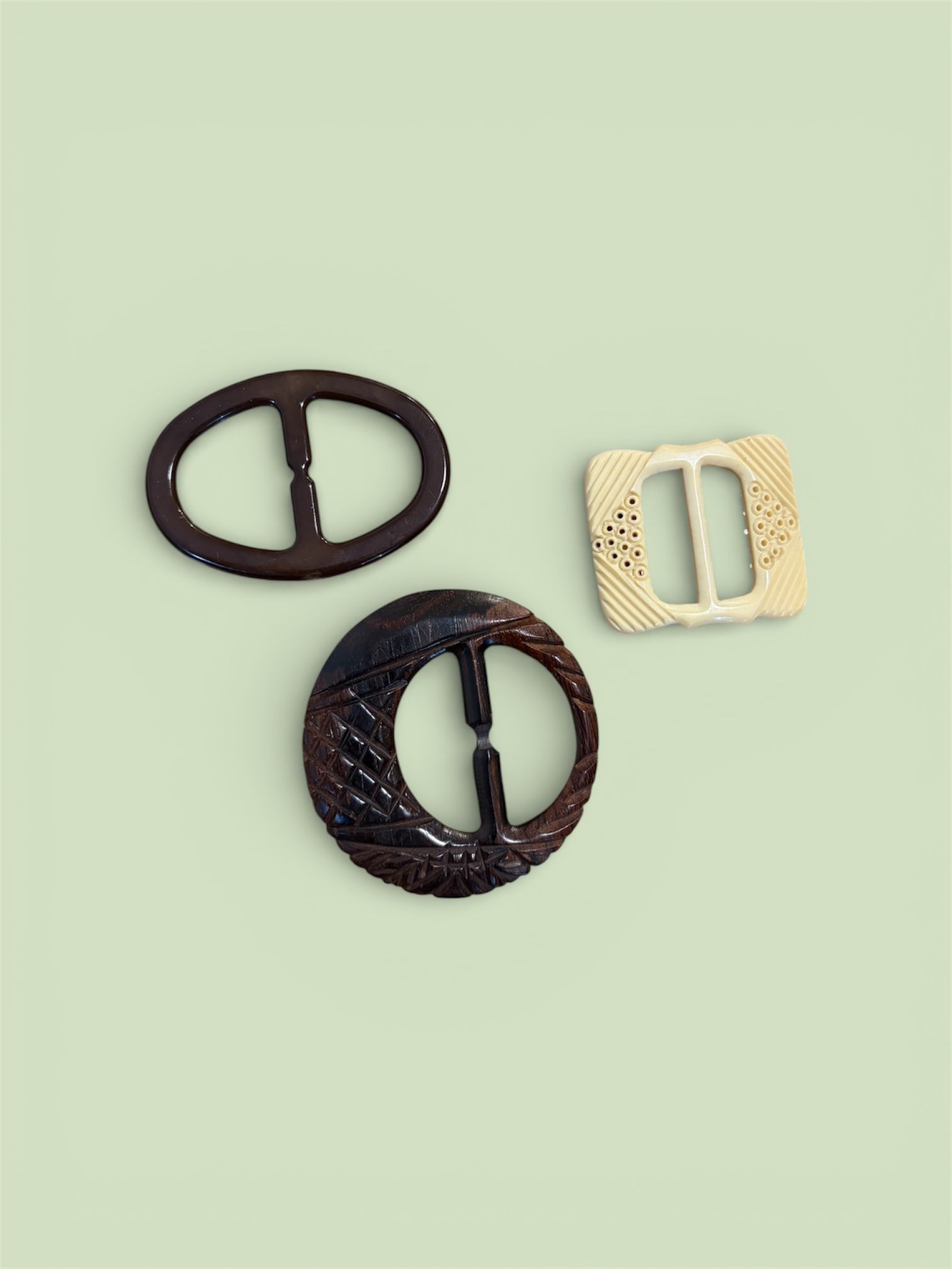 Vintage Bakelite-Style Scarf & T-Shirt Buckles – Set of 3