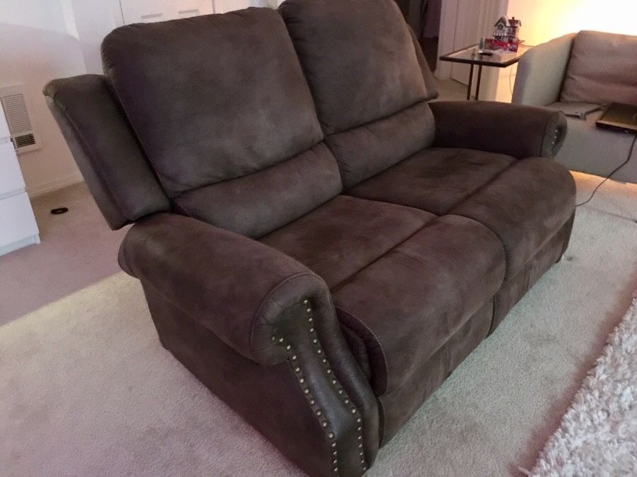 Purchased recently but need bigger couch Super comfortable, reclines flat Will fit in smaller spaces No deliveries Text {contact info removed}