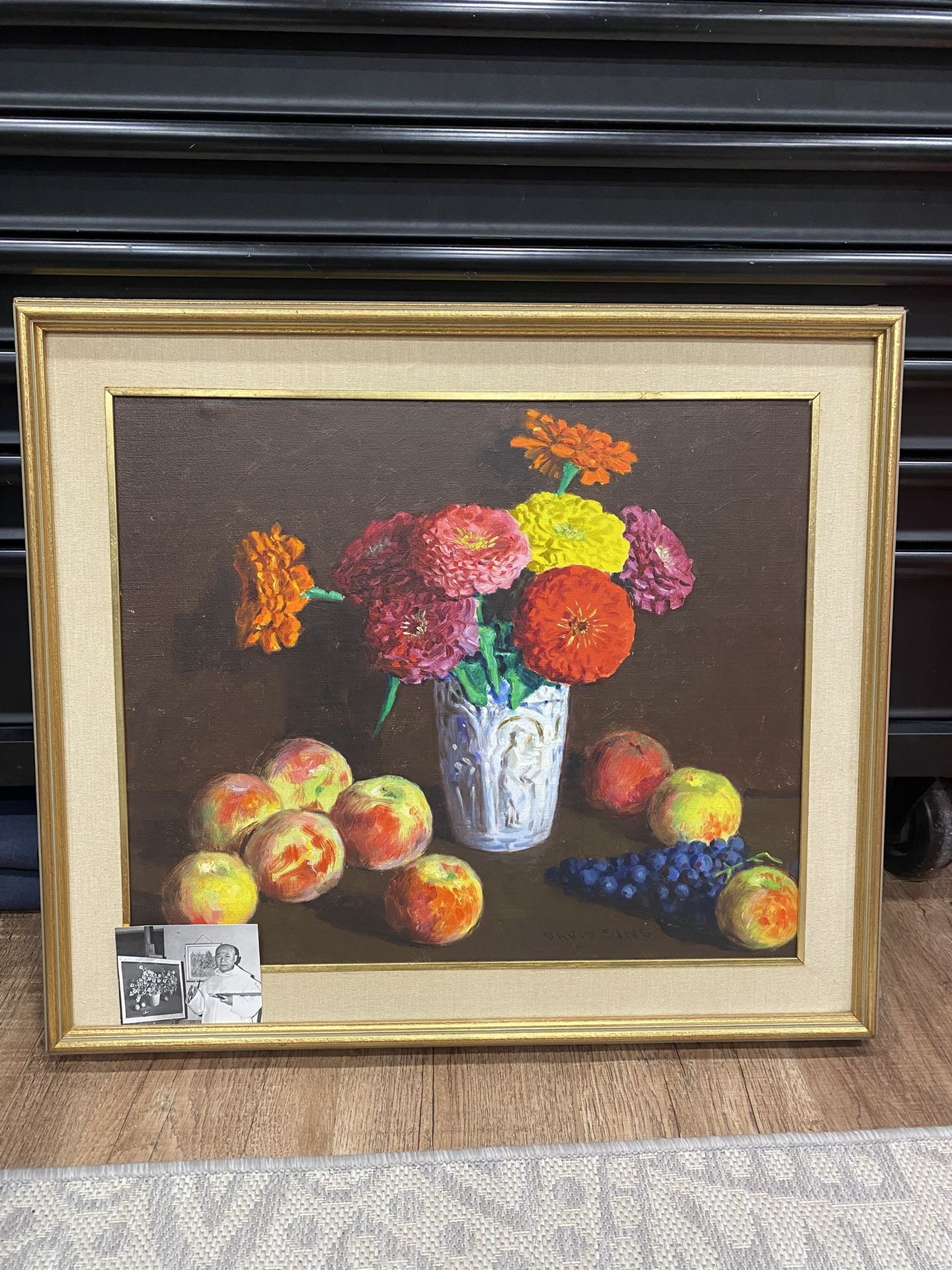 Painting with picture of artist