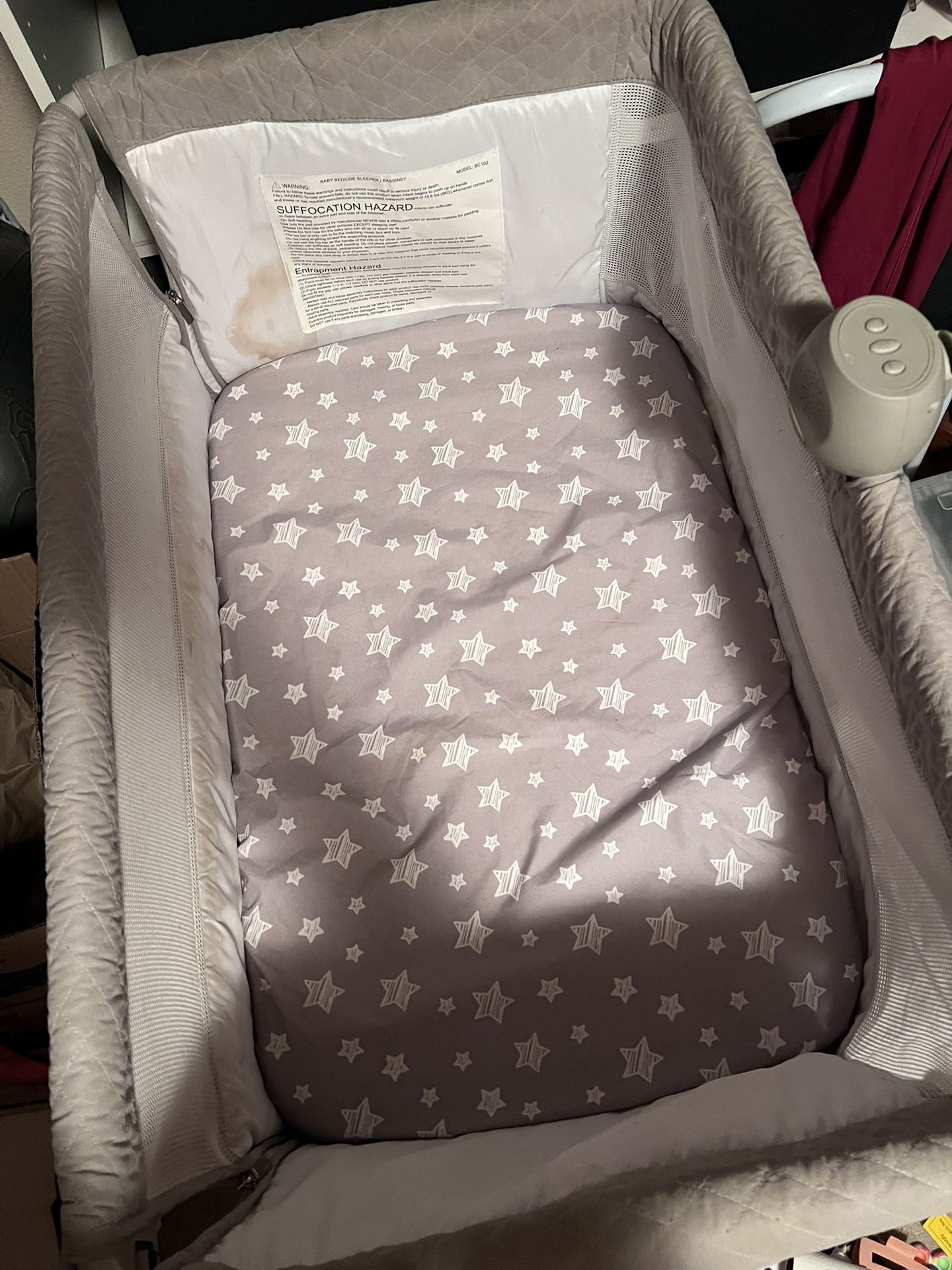 Nothing wrong with it my son never slept in it was more of a wall for him to not fall out of bed. Has a stain but other than that absolutely no flaws. Plays music and sounds to help put them to sleep. Free! Just come pick it up
