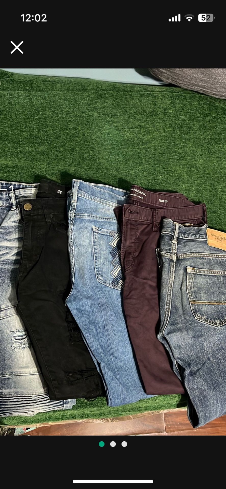 18 jeans jogging pants and dress pants Sizes range from 30/30 3(contact info removed) 3830 Most are regular jeans no whole or ripped jeans Selling cheaper as lot and bundle Trade for ps4 ,iphone , vintage tee Lmk what you got