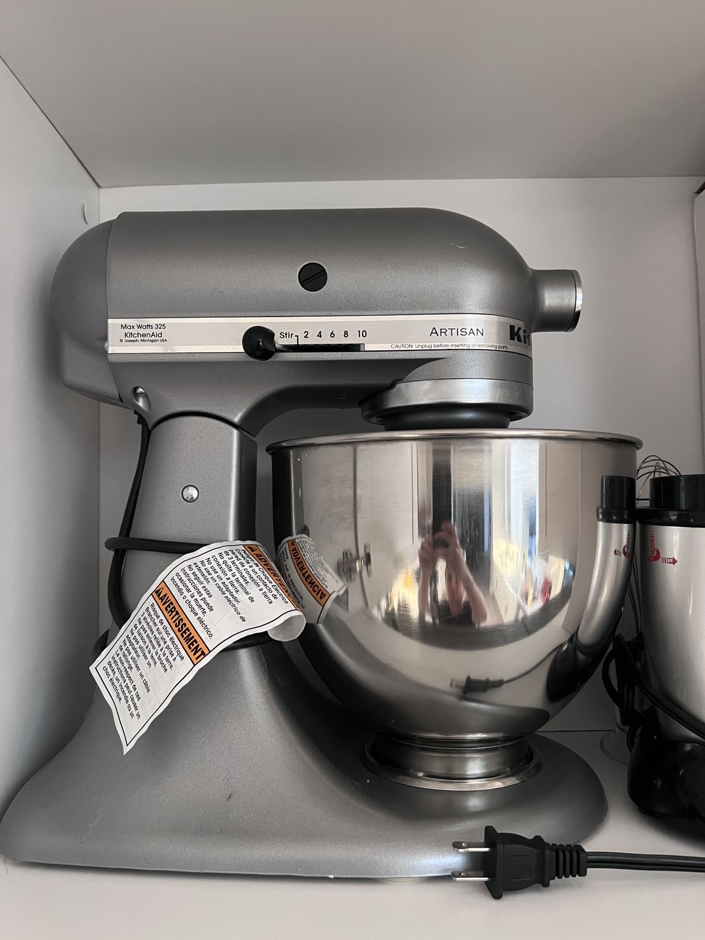 Used Kitchenaid stand mixer with multiple dough attachments. In great condition.