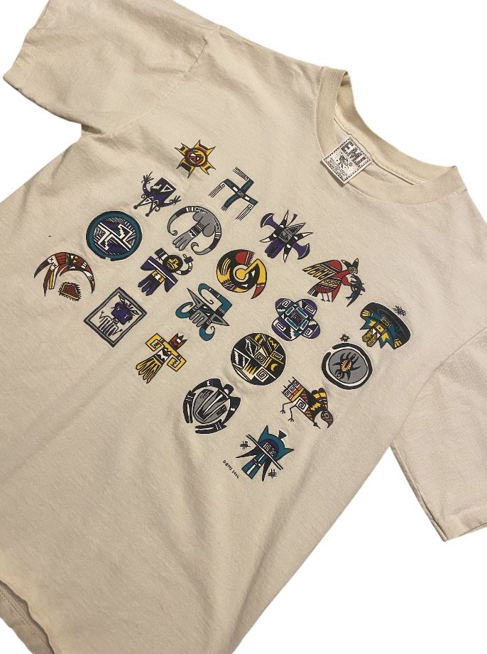 Eye-catching tee with artistic symbols. Soft fabric. Perfect for everyday style. Great condition 1994’ Vintage Single Stitch Top Double Stitch Bottom Size Medium