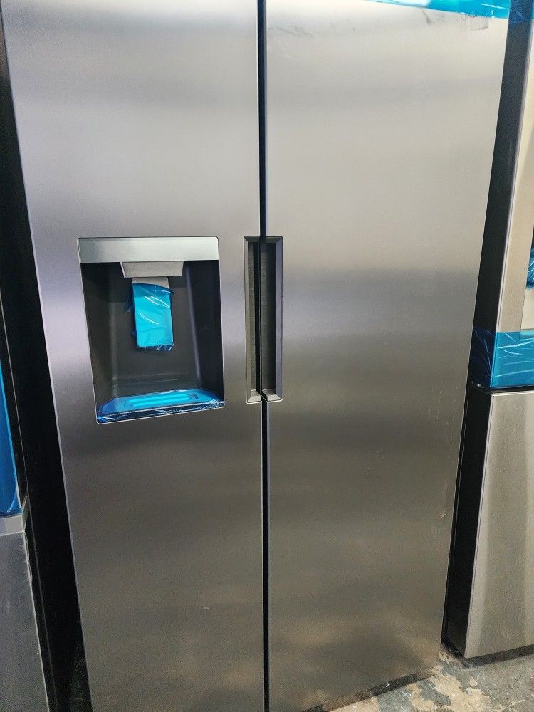 Midea 36-Inch Side-by-Side Refrigerator – New Open Box - $900 Upgrade your kitchen with this Midea 36-inch side-by-side refrigerator, offering a sleek and modern design with plenty of space for all your food storage needs. Features: ✅ Spacious 36-inch width – Perfect for families or those who need extra storage. ✅ Side-by-side design – Easy access to fresh and frozen foods. ✅ Adjustable shelves – Customize your storage for maximum convenience. ✅ Energy-efficient operation – Helps reduce electricity costs. ✅ Modern stainless steel finish – Stylish and easy to clean. ✅ LED lighting – Bright interior illumination for better visibility. Why Buy From Us? ✔ New, Open Box – Never Used ✔ Delivery Available – Convenient drop-off at your location. ✔ Financing Options – Get it now, pay over time. This Midea refrigerator is a great deal at only $900! Message me for more details or to arrange delivery.