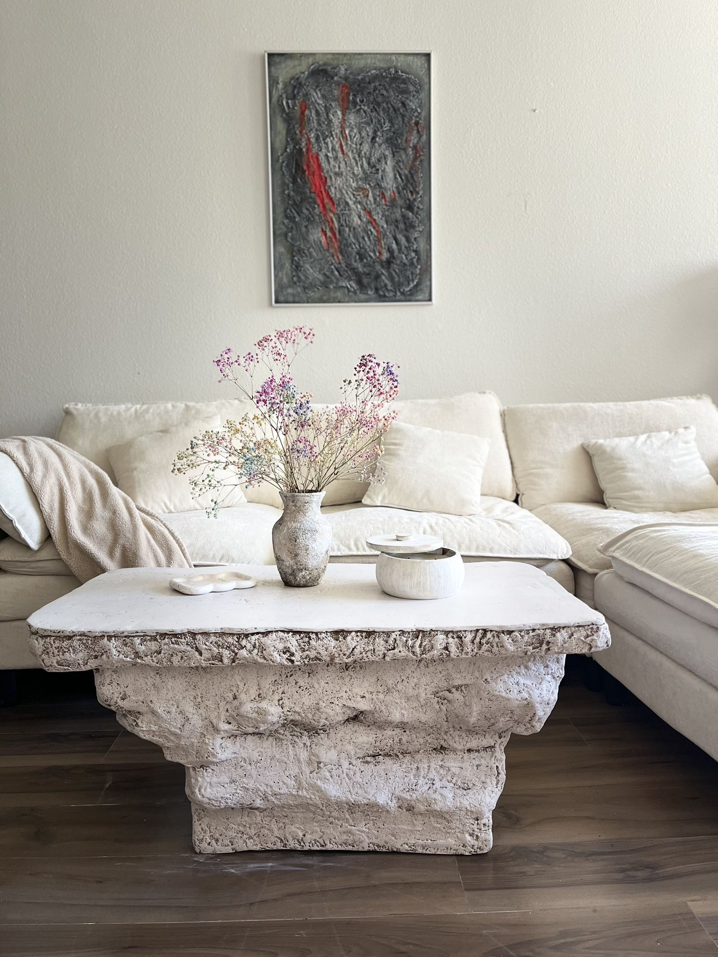 Handmade Beige Concrete Coffee Table | Modern Sculptural Accent Table | Minimalist Cement Furniture