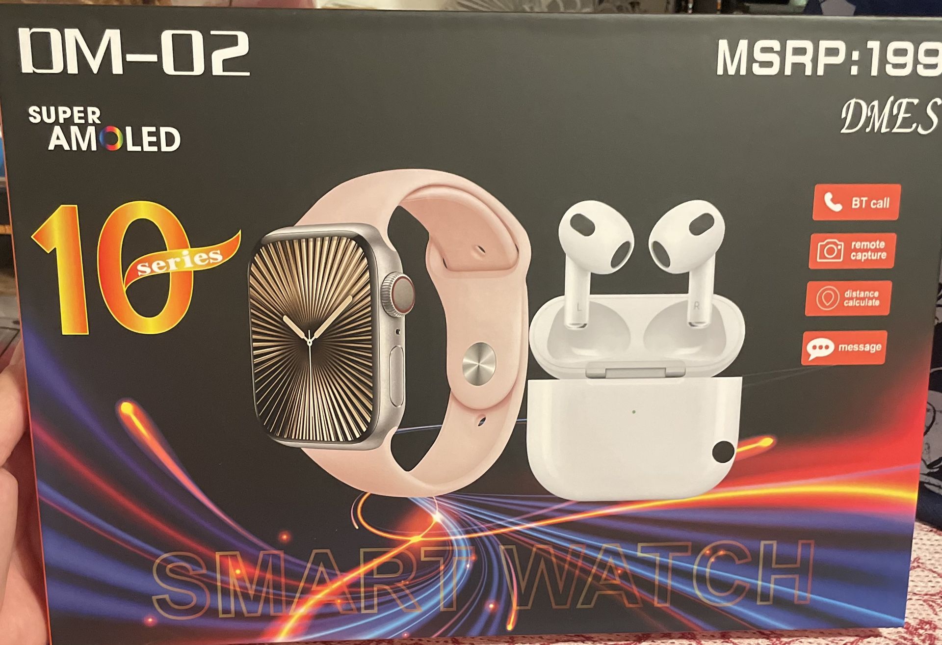 New Smart watch with 8 different bands to accessorize with your everyday attire. Also comes with earbuds and chargers for both. $30
