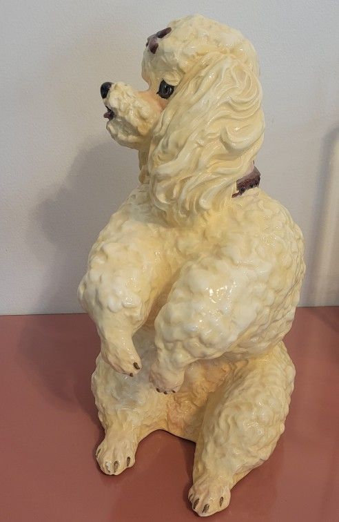 Beautiful Vintage toy poodle figurine by townsend's ceramics, likely from 1970s Hand painted details, approximately 14" tall Considered rare collection Very good condition