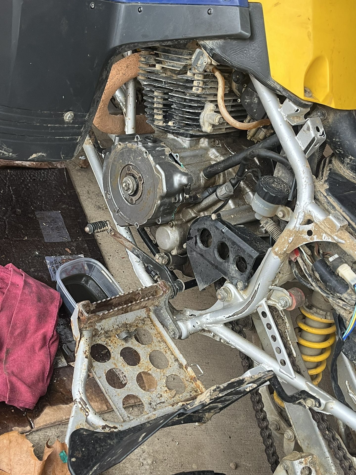 I'm selling this Yamaha Warrior. It was running fine, but now it has no spark. I've already replaced the coil and the CDI, but it still has no spark. It's most likely the stator, but I don't have the tools to fix it. It needs to be repaired.