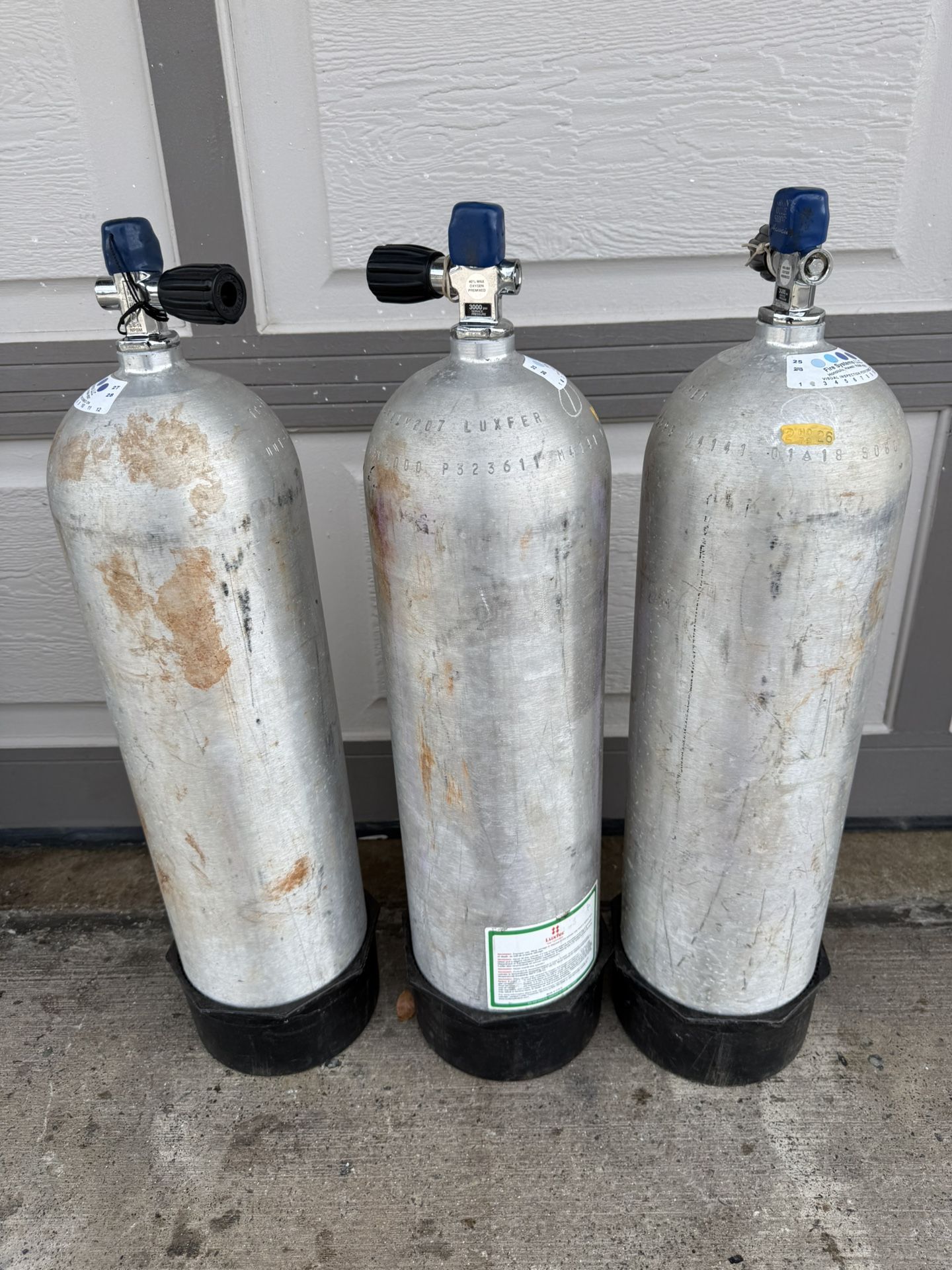 selling as each, 3 available, filled and ready to go … has the pro valve works with din or yolk Also has the boot Silver scuba tank … New Hydro and New VIP Newer tanks manufactured in January 2018 Hydro was done in February 2026 good for 5 years till February 2031 VIP  was done in February 2026 good for 1 year till February 2027 Pro Valves have been cleaned and Service Selling as each $175.00 EACH …  cash only, selling as each  certification … hydrostatic test and visual inspection test, is expensive,  if you buy cheaper scuba tanks and they need certification if your scuba tank fail, you still need to pay for the testing  these tanks have passed the certification and are ready to be used. They can be filled at any scuba shop. 80 ft.³ aluminum, Scuba tanks, $170.00 each …. have 3 available PRO valves