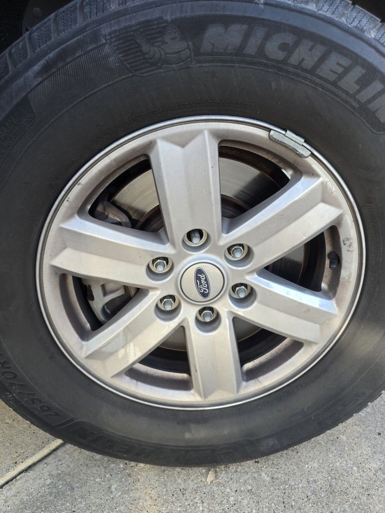 Ford Factory rim and tires for sale. Bought brand new truck. Tires were used for a short period of time Bought after market rims and tires. They have been kept in storage cleaning it out