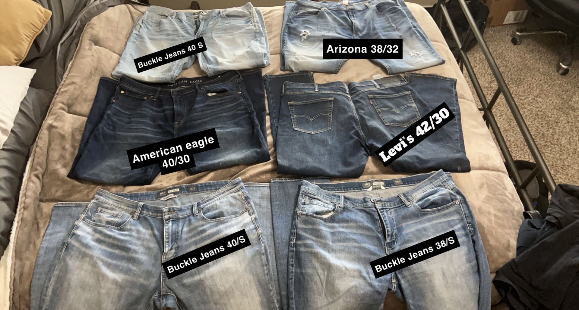 Mens Buckle, Levi’s, American Eagle, Arizona Sizes from 38S 40S 42/30