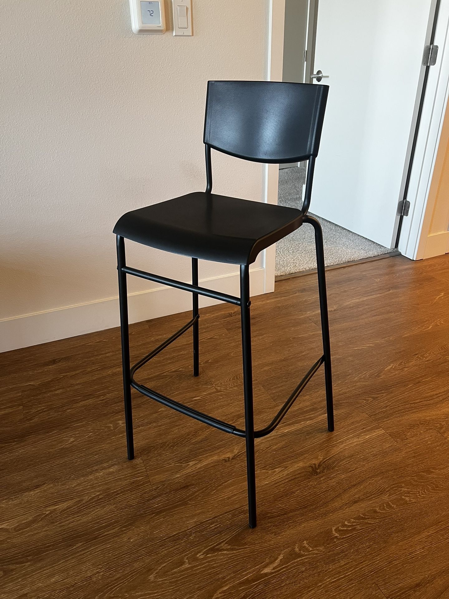 Selling 2 black metal/plastic barstools with backrests $40 OBO for both