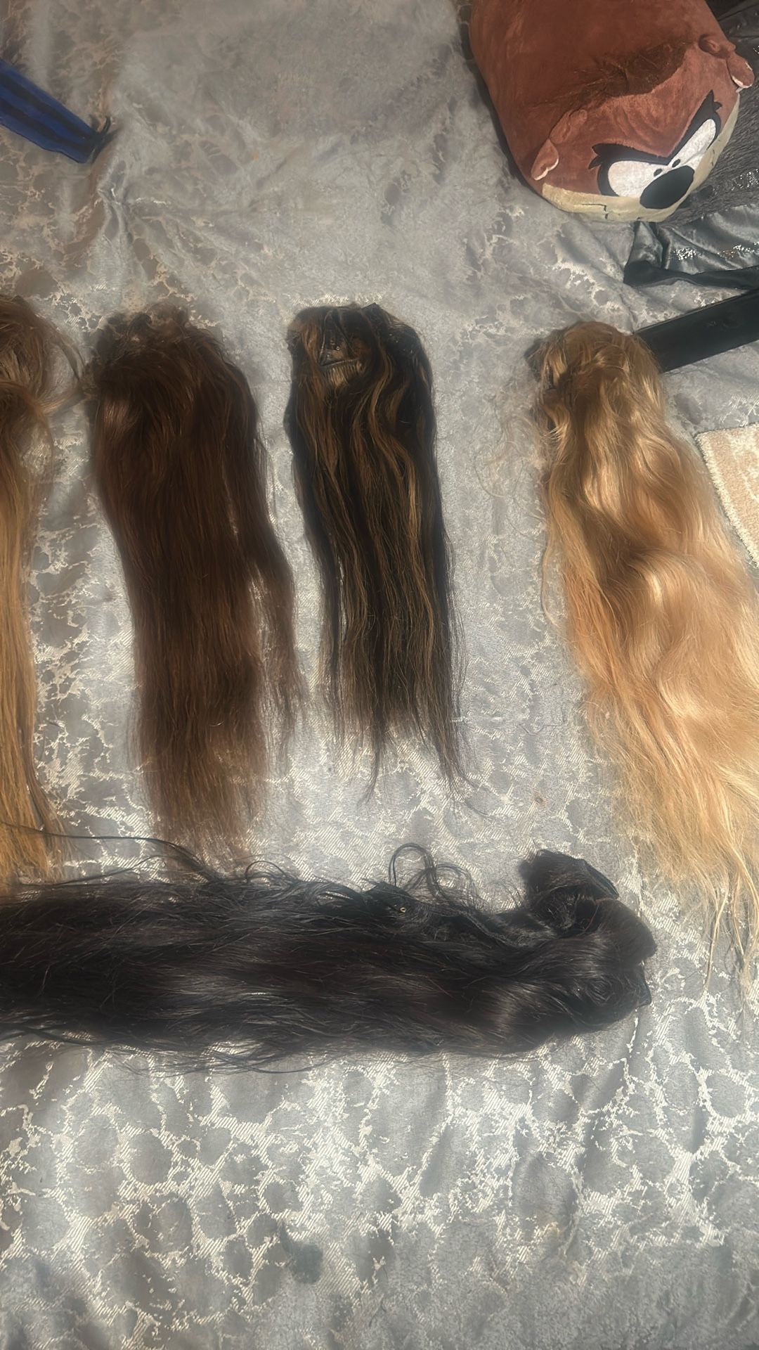 40 each different colors ombré , black , dark brown , brown with highlights , blonde 18-22 in clip in