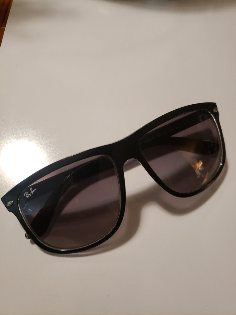 These glasses are pre-loved and have numerous small scratches on lenses and frames. Retails for $200 Ray-Ban Sunglasses RB(contact info removed)0 are trendy Men's sunglasses with a Black frame. The lens color is Grey. The Ray-Ban sunglasses are lightweighted. Brandfield is an official dealer of Ray-Ban sunglasses. Department: Men, Unisex Lens Type: Anti-reflective, Flat Lenses, Gradient, Mirrored, Plastic Lens, Polarized, Reflective Lens, Varifocal Lens Width: 56 mm, 59 mm, 60 mm Material: Metal, Plastic Silhouette: Square & Rectangle