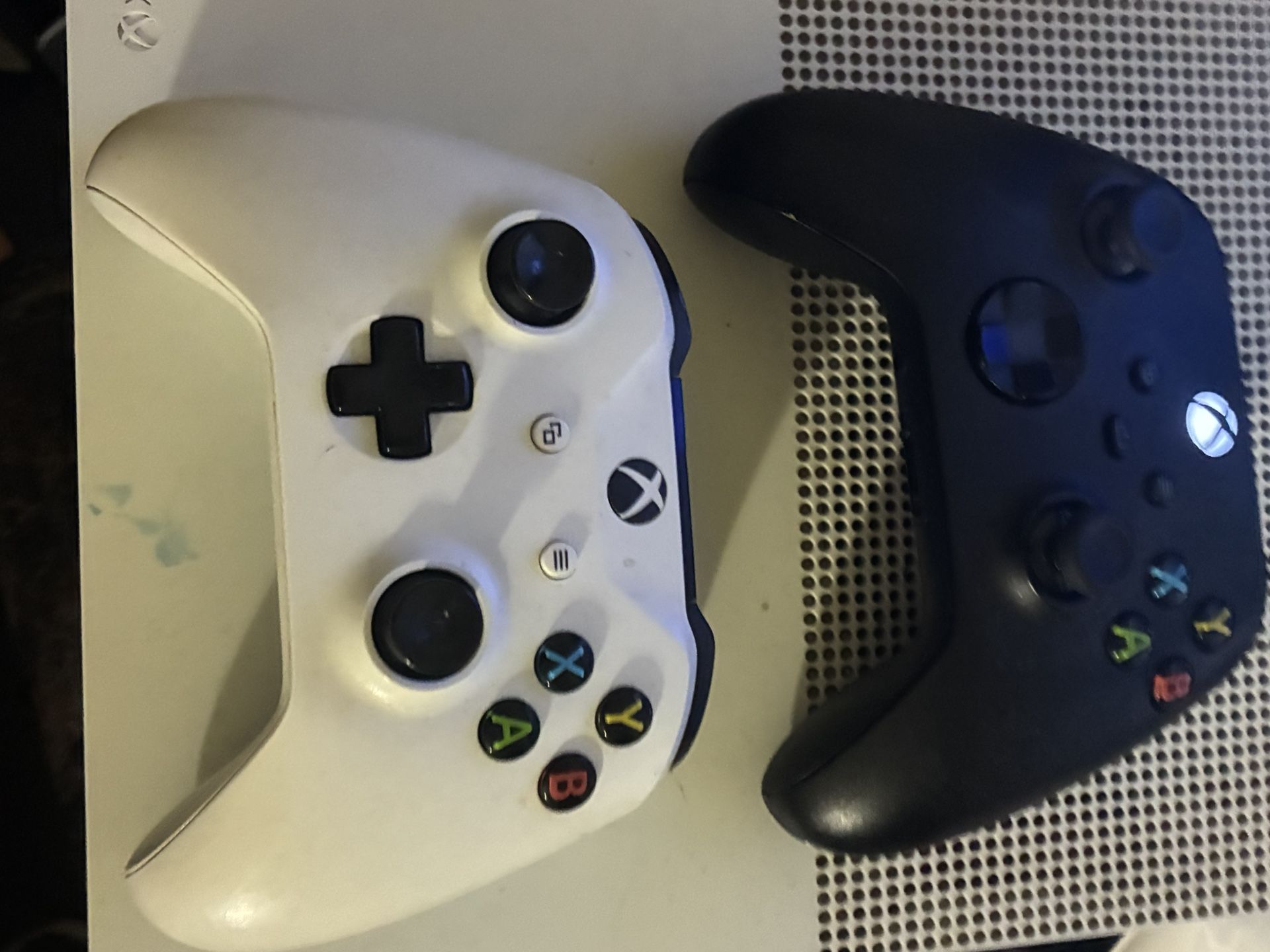 In great condition, just has little wear on it comes with two controllers, one for the series x which works for Xbox 1 and the original controller. Both controllers don’t have back but doesn’t affect the controller. Also comes with gta 5
