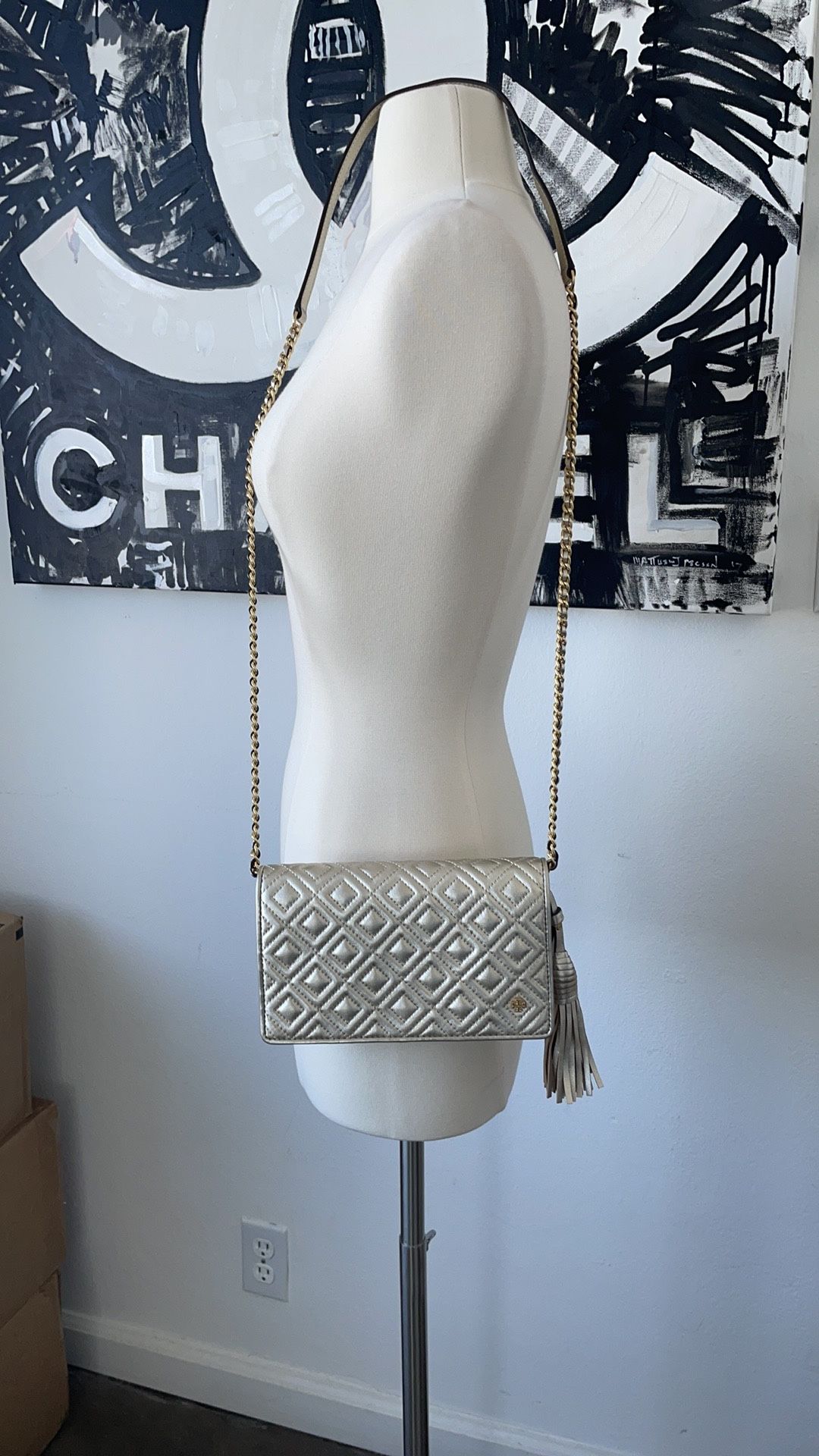 New Tory Burch Chain gold clutch