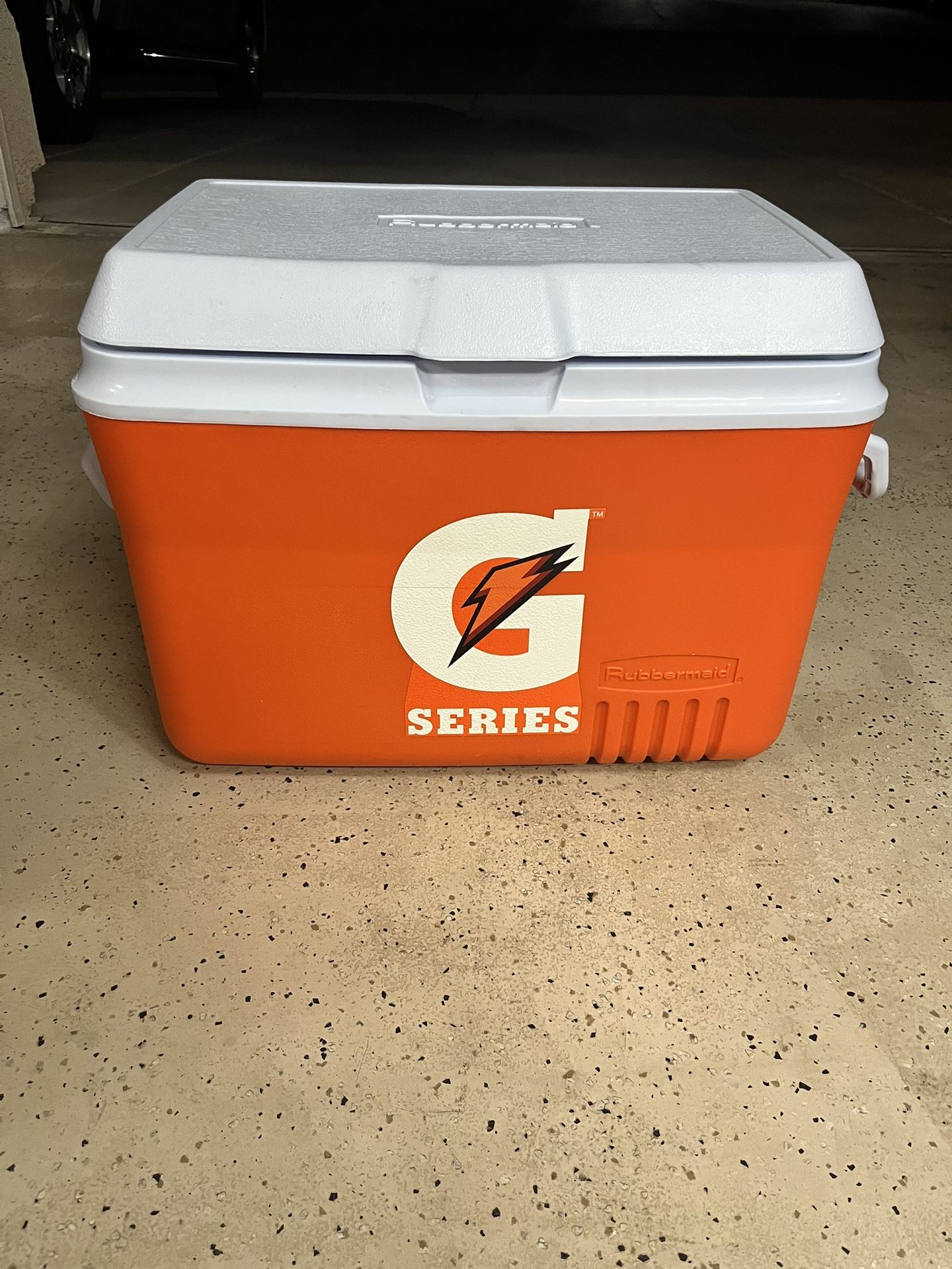 Gatorade G Series ice chests are large-capacity, durable coolers designed for team hydration, often featuring the iconic orange and gray colors, available in sizes from 3 to 10 gallons, with options like rolling carts and clear domed lids, primarily used on sidelines for sports teams to keep drinks cold with ice. New Gatorade Cooler. Great condition. Let me know if you have any questions.