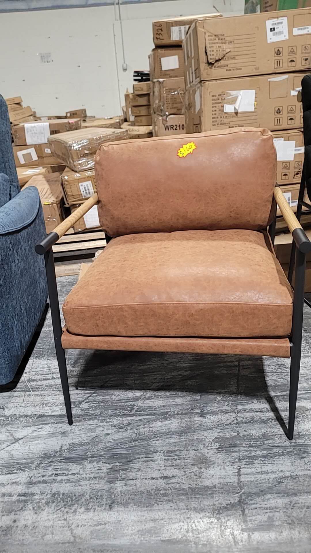 Mid-Century Accent Chair, Soft Armchair PU Leather Lounge Chair with Black Metal Legs, Upholstered Leisure Chair for Living Room Bedroom Reception Room, 1PC, Brown $160