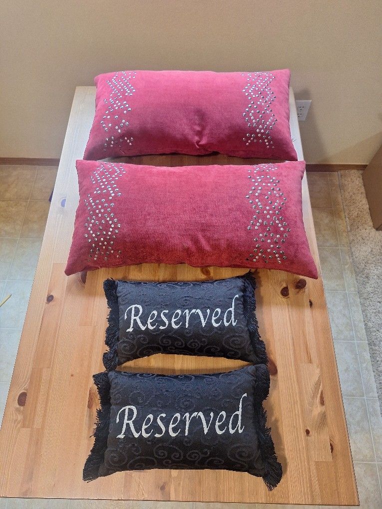 4 pillows, 4 additional theater themed pillow covers( never been used), and 2 metal hanging wall art decors. Very good condition 1 of the wall arts was $50 by itself. $30 for the entire set!