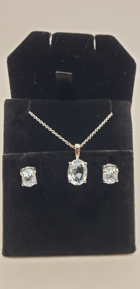 2.54 CT Blue Topaz Sterling Silver Pendant 18" Chain & Earrings Price $275 Free Shipping H-54397