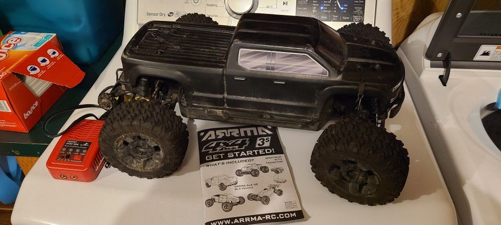 Big Rock V3 ready to drive. 4wd brushless and waterproof. All stock,. Used but not beat to hell. Runs/works great. Comes with manual, 3s lipo battery and prophet passport mini lipo charger. Ready to rip. $180 FIRM. Please don't ask for a lower price. Very firm at $180. It's a great deal.