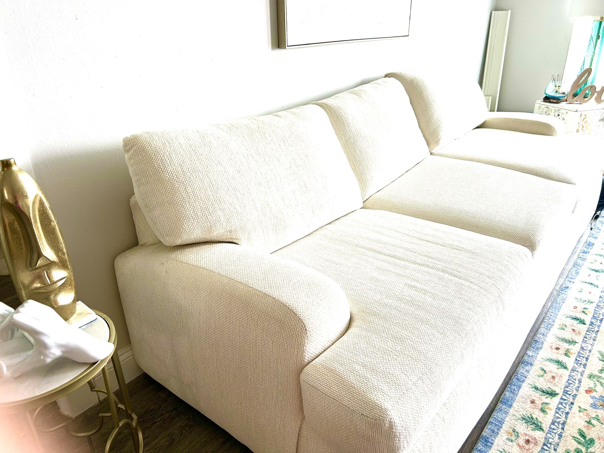 It's 2 years old. I bought it at City Furniture for $1,499. It's like new. I don't have any pets. I accept offers. I'm leaving Miami. I'll give the pillows to whoever buys it.