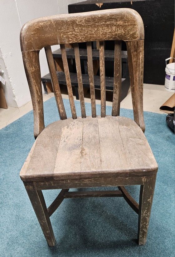 This is a great heavy vintage oak office chair that appears to have been used by an insurance company. I bought it to refinish, but never had the time. This would look amazing refinished and will hold up for many years. It's solid. I am guessing early 1900s for age.
