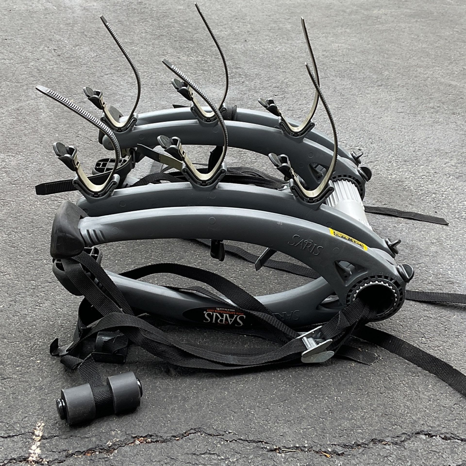 Saris 3 bike rack. Works great. Including a $25 Saris hatch huggers accessory for most trunk door with rounded corners. Paid over $250 a few summers ago.