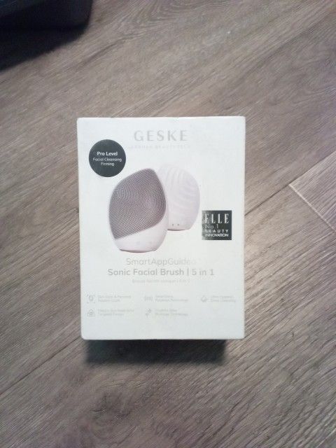 GESKE Sonic Facial Brush 5in1 Available in 45 languages, Smart app guided, AI powered skin scan and personal routine guide, also video guided, in app rewards you also get Expert tips, flexible eye nose area targeted design, smart Sonic pulsation technology, youthful glow massage technology, ultra hygienic deep cleansing, skin friendly silicone, all skin types, super soft and flexible silicone tips, anti-aging massage technology, double-sided application device, 14 full-spectrum cleansing modes, dermatologist approved, built-in rechargeable battery, magnetic charging, waterproof - ipx7, 15 year guarantee, Phthalate - paraben - sulfate free - vegan - sustainable - EcoFriendly - long lasting design, cruelty free, decorative home spa accessory.