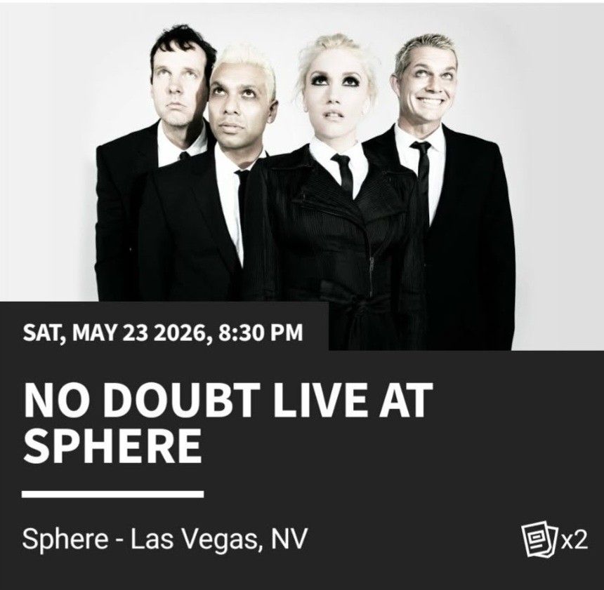 No Doubt Live At SPHERE Las Vegas 2 Tickets Section 201 Row 13 Seats 5-6 Memorial Day Weekend Saturday May 23rd Plans changed and can't go anymore just want to make back what I paid for them and ticketmaster has resale blocked. $780 for both tickets Willing to meet up to transfer in person directly from Ticketmaster. Must have ticket master account. I can accept cash, zelle, PayPal or combination of all. #SPHERE #lasvegas #nodoubt #residency #concert #gwenstefani